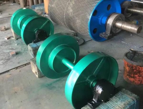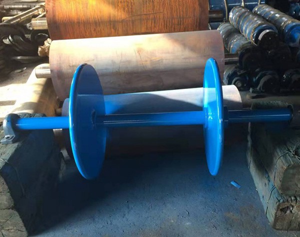 壓帶輪:包括左皮帶支架和右皮帶支架,所述左、右皮帶支架分別對稱設置在皮帶的兩側,在左皮帶支架和右皮帶支架之間可轉動的連接有擋輪,所述擋輪為圓柱形且水平設置在皮帶的上方。在左皮帶支架和右皮帶支架上還對應設有可轉動的左轉輪和右轉輪,所述左轉輪和右轉輪分別設置在豎直方向上且均與皮帶的邊沿接觸。本實用新型的壓帶輪機構能夠完全限制皮帶的跳動,使得皮帶被牢牢的限制在設定的空間范圍內,避免了物料滑出皮帶,而且避免了卡帶的情況,保障了皮帶的正常運行。壓帶輪主要用于改變輸送帶的運行方向,壓帶輪用于輸送帶上表面(承載面)。
